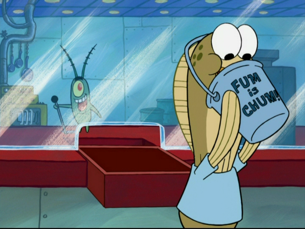 The chum bucket is a failing restaurant directly across the street from the krusty krab. Welcome to the chum bucket: While there, spongebob is so homesick. The chum bucket is a cannibalistic restaurant! Posting quotes, jokes, advice and facts that relate to your everyday life. A chumbox, a form of online advertising. The chum bucket, the fictional restaurant run by plankton and karen in spongebob squarepants. Chum bucket is a world of warcraft object. And karen plankton, where they both reside. The location of this object is unknown. Chopped fish, fish fluids, and other material thrown overboard as angling bait. Krabs loses spongebob's fry cook contract in a bet with plankton and spongebob is forced to go work at the chum bucket. At the chum bucket, plankton hatches his evil plans to steal the krabby patty recipe.